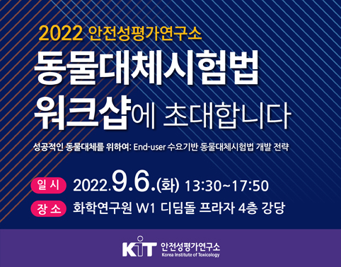 안전성평가연구소(KIT)에서는 동물대체시험법의 성공적인 개발과 활용을 위해서 관련 분야 전문가들의 의견을 나누는 장을 마련하고자 하오니