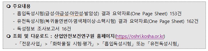 | (산업안전보건연구원) 화학물질 독성시험·조사 결과 공개 안내 | |